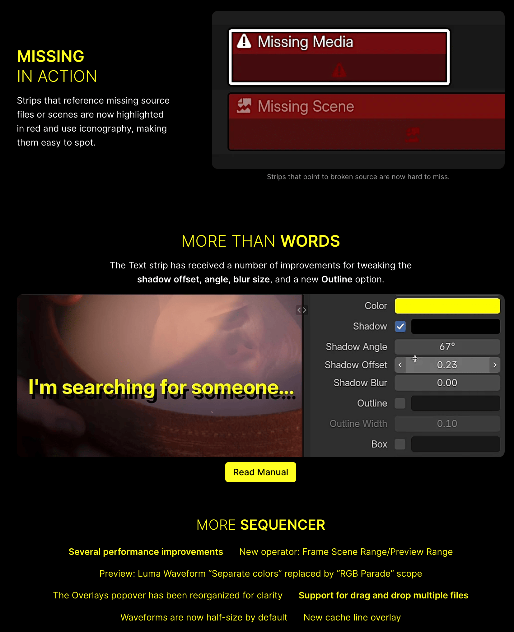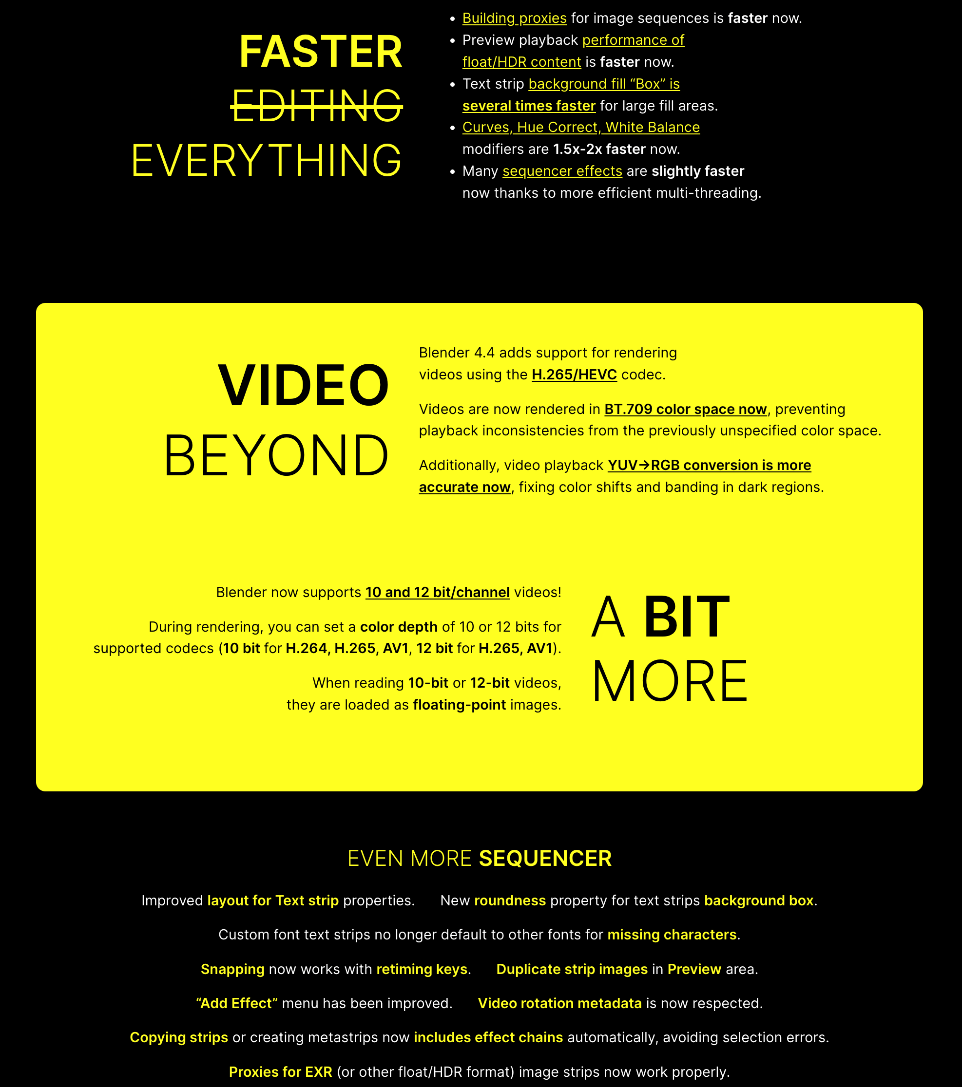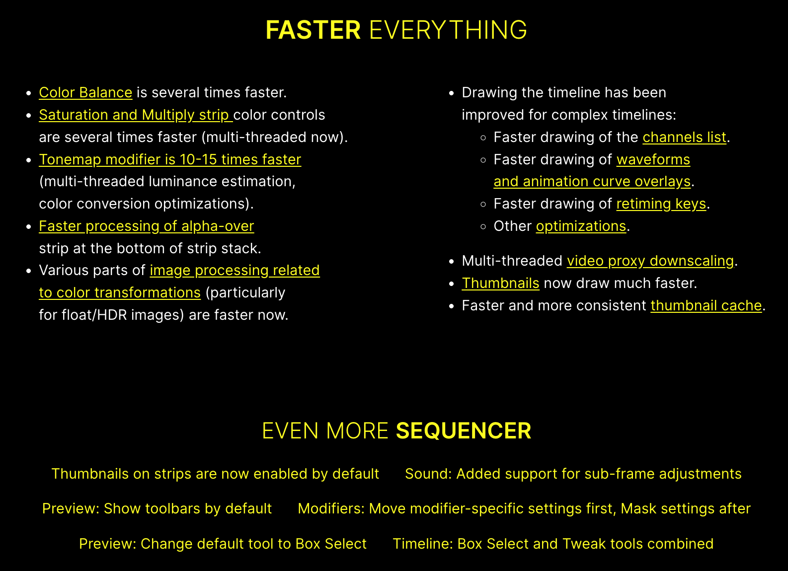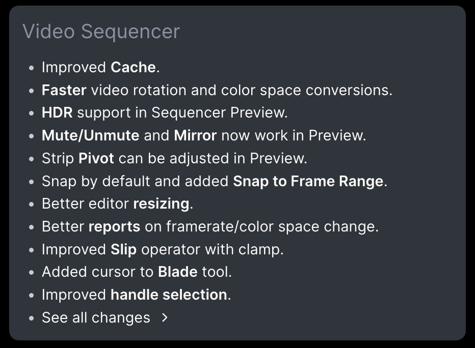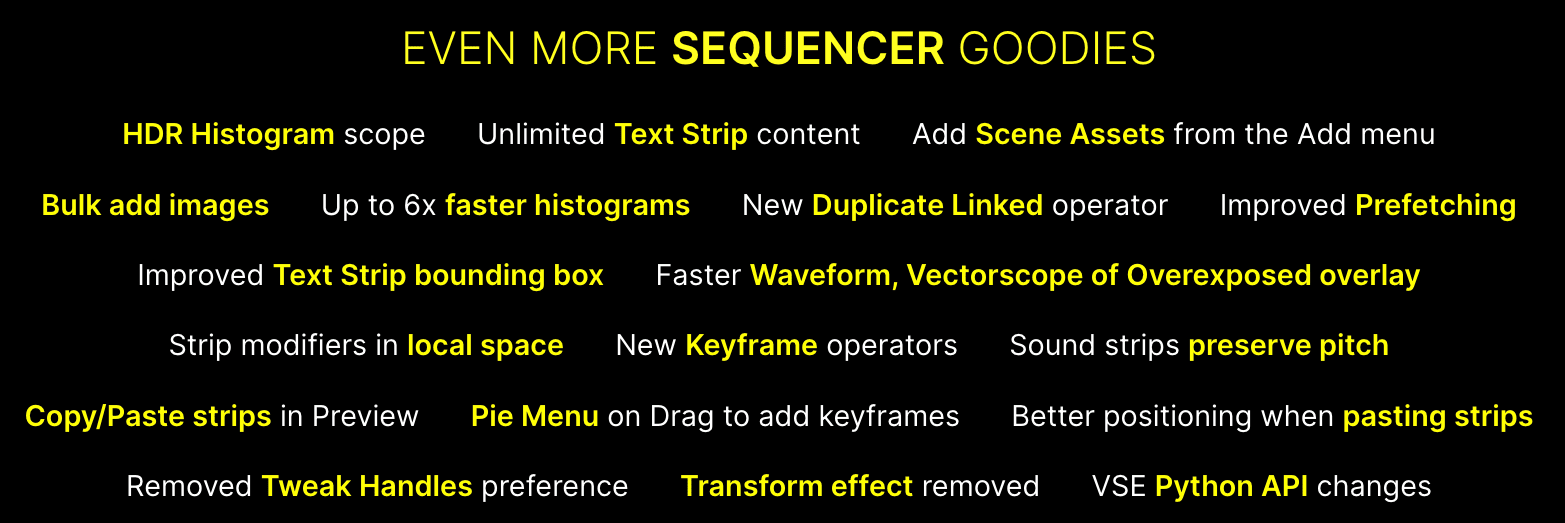 It feels like recently VSE did get quite many improvements across workflow, user experience and performance. The first one I contributed anything to was Blender 4.1, and look what has happened since then (pasting screenshots of the release overview pages):